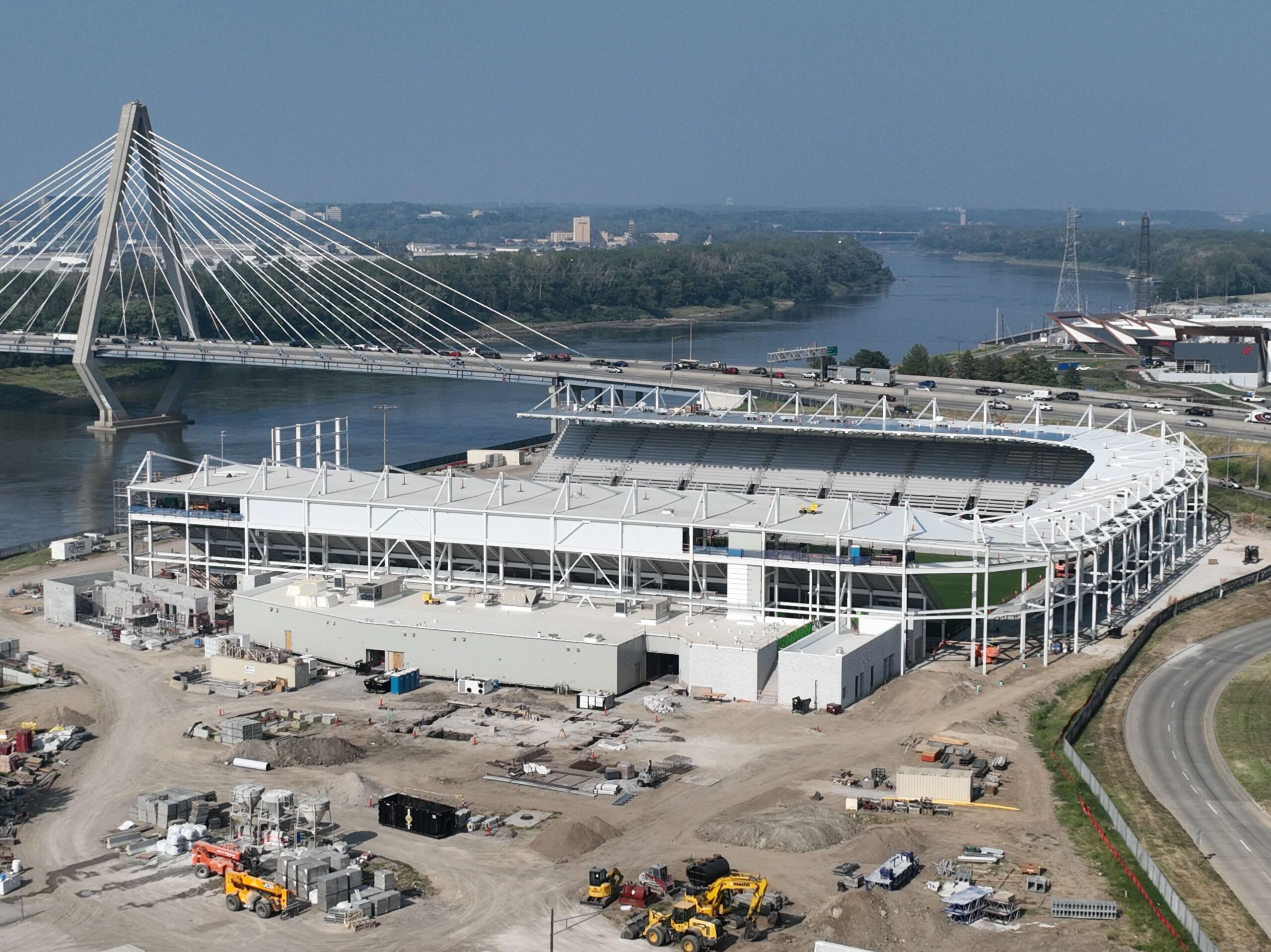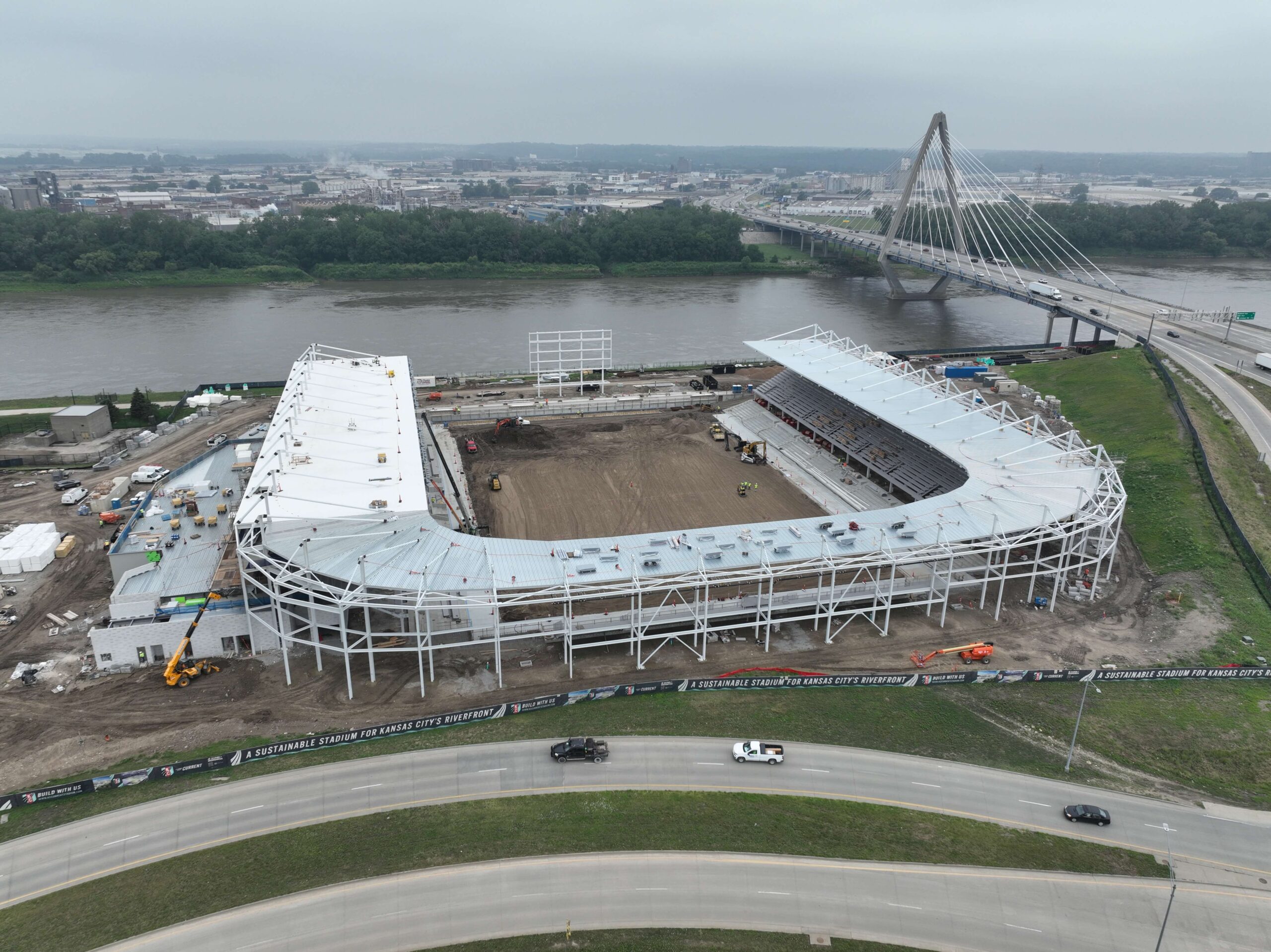 The CPKC stadium is the focal point of the Berkley Riverfront Park development. The location’s proximity to water meant more than beautiful views — our crews dealt with unpredictable (and often unfavorable) soil conditions throughout the jobsite. We also delivered the Kansas City Current’s new stadium on a very tight schedule. Superior Bowen’s SiteWorks team needed to provide a stable foundation for structures and footings capable of supporting the stadium and ancillary structures. This required extensive improvements. The urban site was densely packed with other trades, which meant that work and deliveries required careful sequencing.