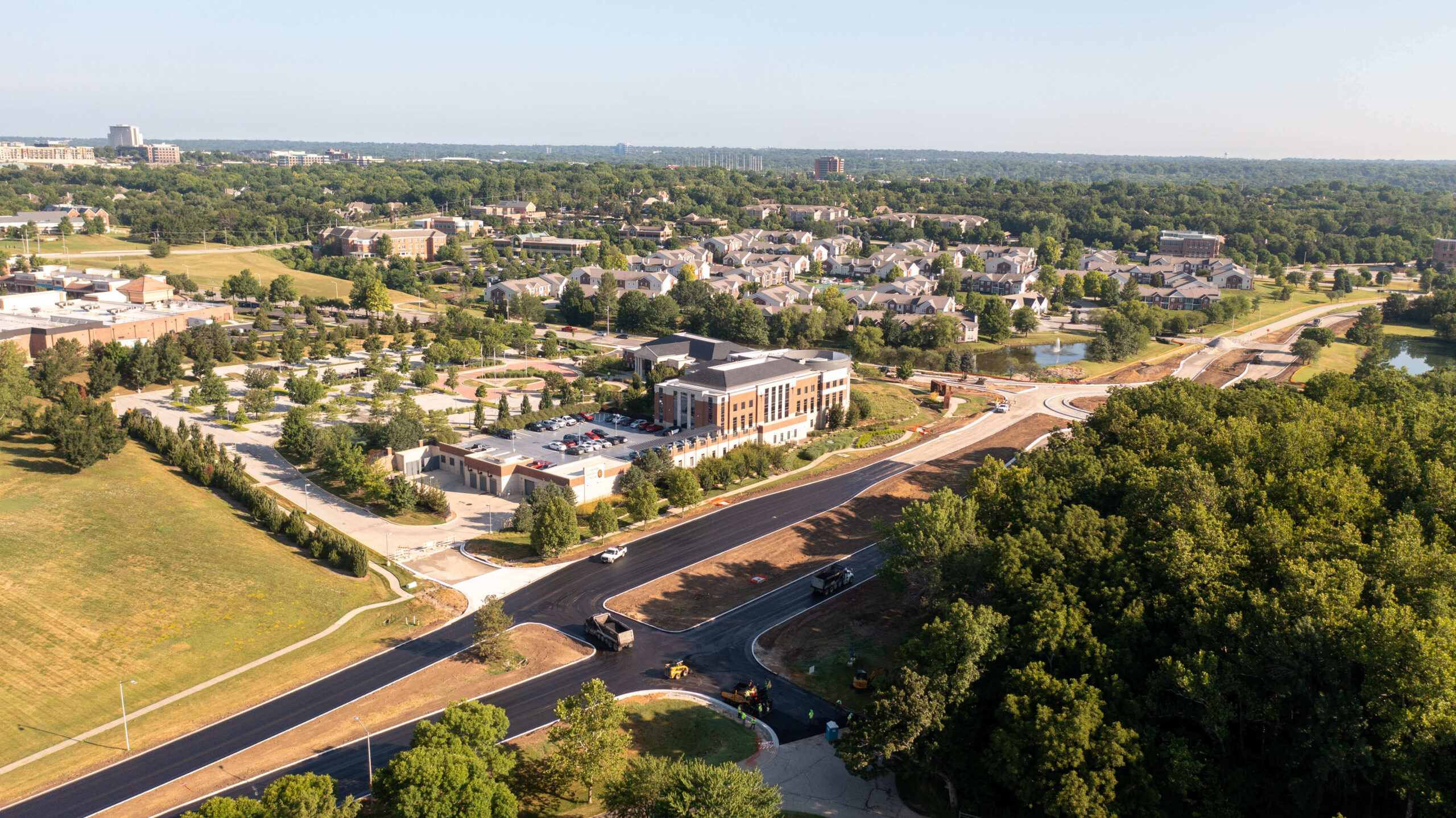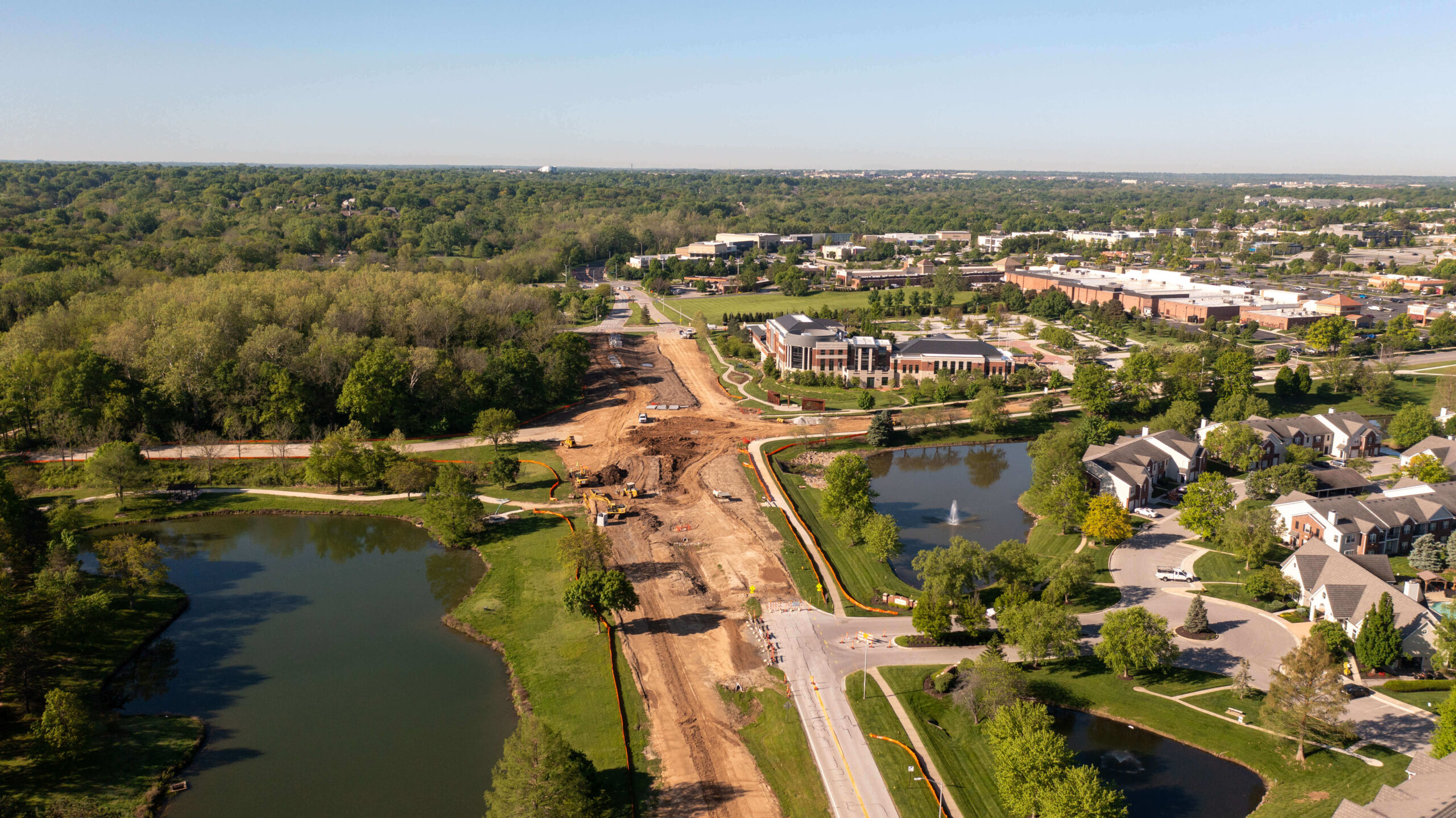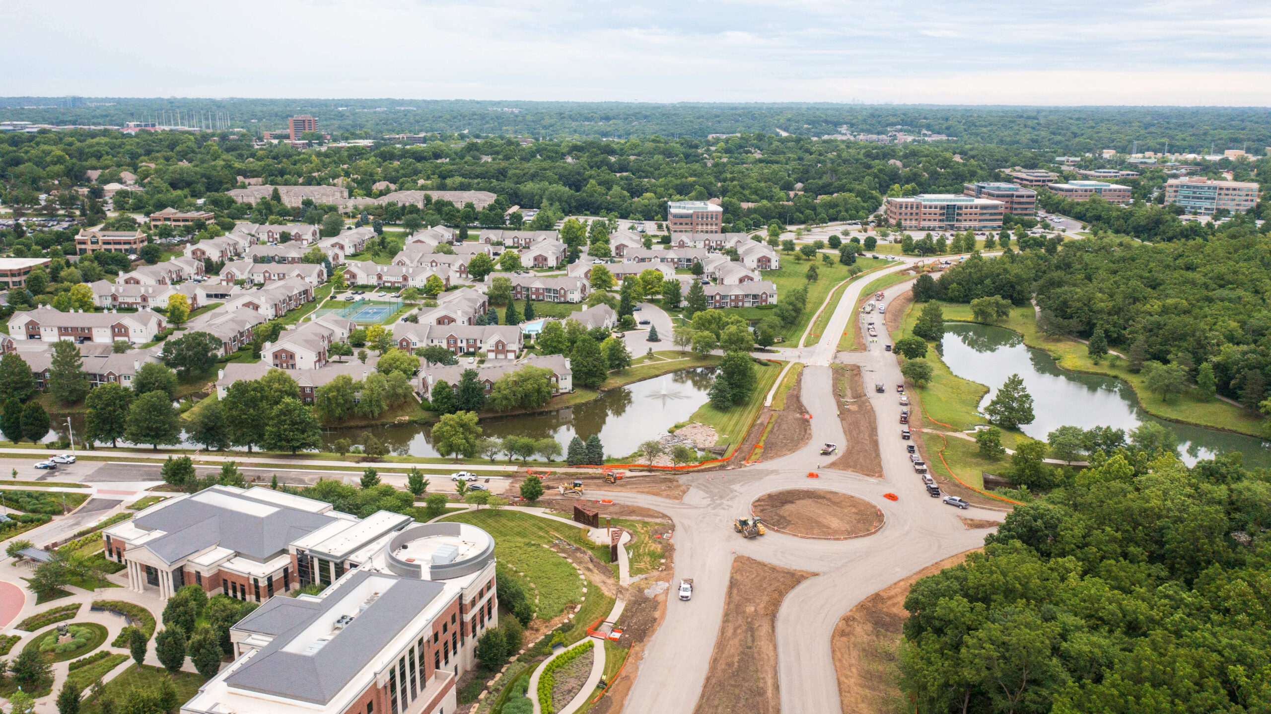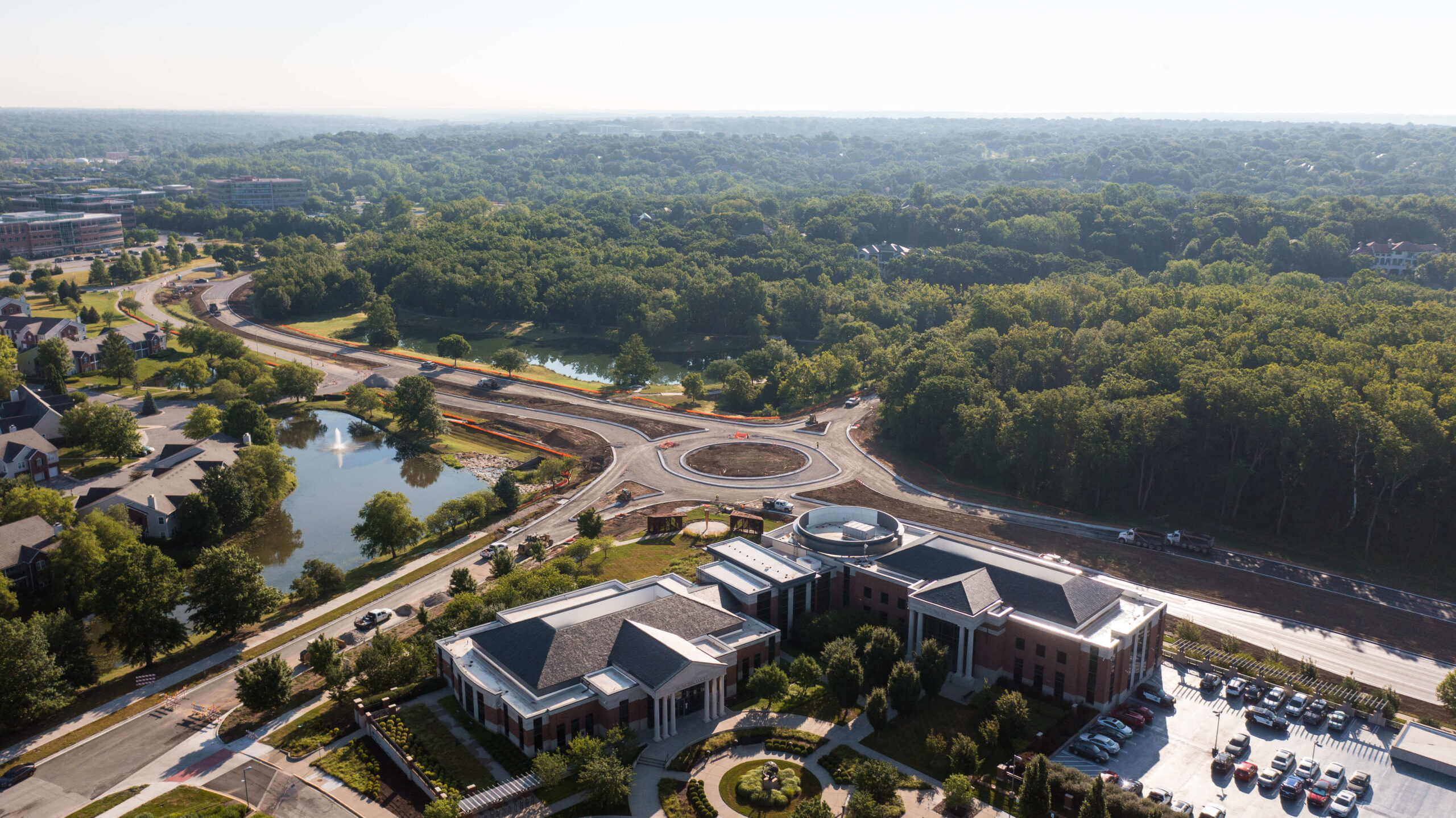 In addition to our creek enhancement work, Superior Bowen rebuilt the main road and a beloved community walking trail. To get the parkway out of the 100-year floodplain, we tore out and elevated the existing pavement. Our scope included the addition of a roundabout at the parkway’s intersection with Town Center Drive. By the time the project concluded, our team had improved water flow and traffic flow for the citizens of Leawood.